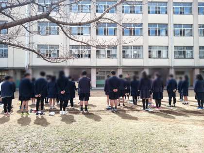 写真は、合同練習後のそれぞれの学年のようすです。5年生(写真上)は中庭で「別れのことば」を、6年生(写真下)は講堂に残って歌の練習をしていました。両学年共に、今回の練習で明らかになった課題に即対応したようです。