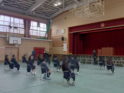 5・6年生は午前中、卒業式に向けての合同練習を行いました。今回から本番と同じような流れで、入場から退場まで通しで練習をします。