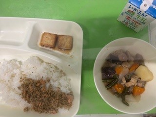 4/18 今日の給食 公開日 2025/04/18 更新日 2025/04/18 お知らせ 今日の献立は ・鶏肉とじゃがいもの煮もの ・あつあげのしょうゆだれかけ ・紅ざけそぼろ ・ごはん ・牛乳 です いいね(0)