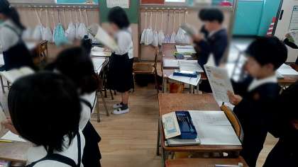 5/2 2年 国語科 公開日 2025/05/02 更新日 2025/05/02 お知らせ 2年生の国語は「おがわの はる(あおと かいち作)」を音読していました。 この詩は、「あいうえお」からの五十音が順番に、同じリズムで繰り返しながら登場する、読んでいて楽しい作品です。 全員で音読した後は、ゆっくり読んだり早口で読んだりと、各々で読み方を工夫して楽しんでいました。 いいね(0)