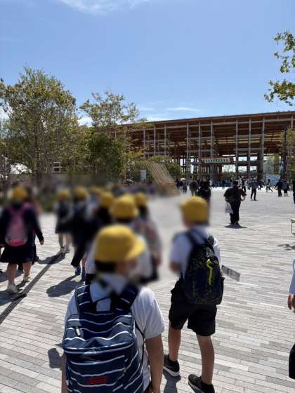 一方、5年生は、11時15分からの「関西パビリオン」の見学に向けて、西ゲートから東ゲート方面に移動中です。