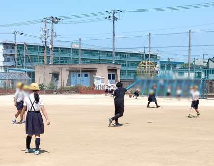 お昼休みの運動場のようすです。少し汗ばむくらいの陽気の中、子どもたちは元気で遊んでいました。