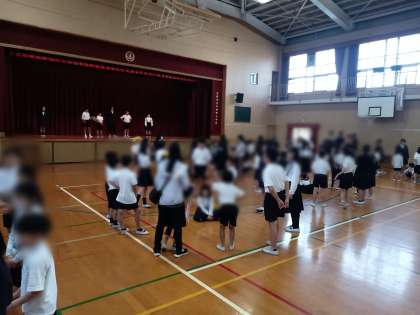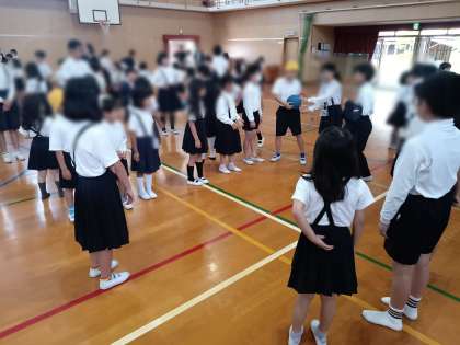 毎月第1、3木曜日の朝は「児童集会」があります。今年度は今日が第1回目の活動となりました。