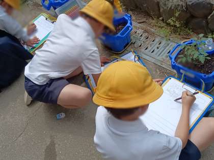5/16 2年 生活科 公開日 2025/05/16 更新日 2025/05/16 お知らせ 2年生は、先日植えたミニトマトを観察していました。 子どもたちは、ミニトマトの現在のようすをワークシートに絵と文で表現していました。 ミニトマトはまだまだ苗の状態ですが、これからぐんぐんと成長して木となり実をつけていきます。子どもたちには、その成長のようすをしっかりと観察してほしいですね。 いいね(0)