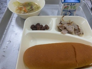 6/27 今日の給食 公開日 2025/06/27 更新日 2025/06/27 お知らせ 今日の献立は ・豚肉のバジル焼き ・鶏肉とキャベツのスープ ・うずら豆のグラッセ ・パンプキンパン ・牛乳 です。 いいね(0)
