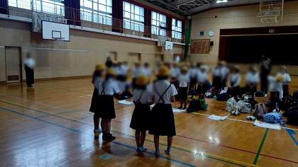 午前7時10分に学校に集合し、出発式を経て、定刻通り、バスで目的地の「大阪府青少年海洋センター」に向けて出発しました。