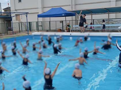 今週はいいお天気が続くという予報ですが、子どもたちには、熱中症に気を付けながら気持ちよくプールを楽しんでほしいです。