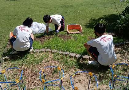 午前中は主に各学年・学級に入って教員の補助的役割として動きます。午後からは管理作業員さんの指導のもと、校内の環境整備のお手伝いをします。