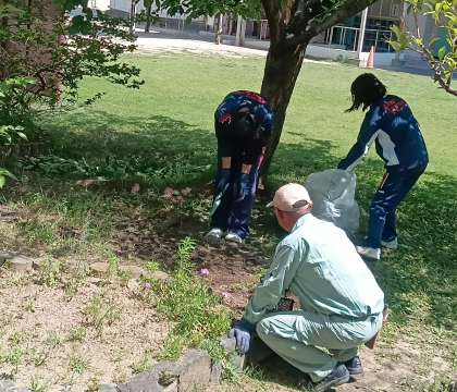 1日目の今日は、教室では子どもだちの学習の様子を観察したり、プール水泳ではプールサイドからの安全を監視したりしました。午後からは、厳しい暑さの中で中庭近くの花壇の整備をしてくれました。