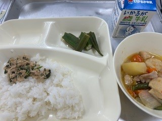 7/3 今日の給食 公開日 2025/07/03 更新日 2025/07/03 お知らせ 今日の献立は ・鶏肉と一口がんもの煮物 ・オクラの梅風味 ・つなっぱ炒め ・ごはん ・牛乳 です。 いいね(0)
