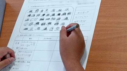 テーマは「バランスのよい食事を考えよう」。1食分の献立を考えた後、給食が栄養バランスを考えて作られていることを学習しました。