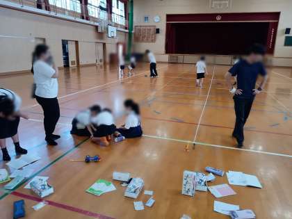 7/14 3年 理科 公開日 2025/07/14 更新日 2025/07/14 お知らせ 3年生の理科は「風とゴムの力のはたらき」です。 講堂で、ゴムの力を使って物を動かす実験をしていました。 子どもたちは、グループで実験用の車を使って、輪ゴムの本数やねじった回数と走った距離との関係について調べていました。 発射台から放たれた車を懸命に追いかける子どもたちの姿にとても心が和みました。 いいね(0)