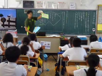 9/1 5年 国語科 公開日 2025/09/01 更新日 2025/09/01 お知らせ 5年生の国語は「心の動きを短歌で表そう」です。短歌作りをしていました。 前時で作ったイメージボード(写真中)をもとにして、「五・七・五・七・七」の三十一音で表現します。 子どもたちは指で音を確認しながら、自分の感じたことや考えたことをノートに書き表していました。 来週金曜(12日)に予定している学習参観のときには、子どもたちの短歌がお披露目されることでしょう! いいね(0)