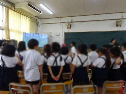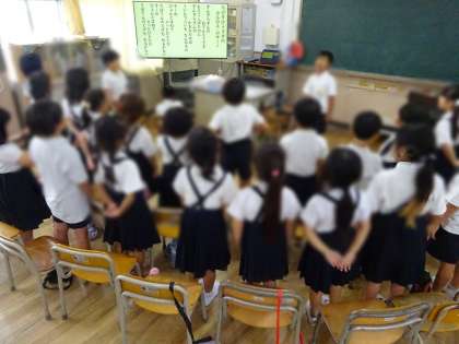 子どもたちは大型モニターの前に集まり、先生のオルガンの演奏に合わせて元気よく歌を歌っていました。