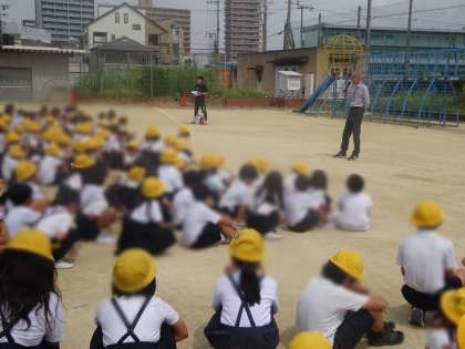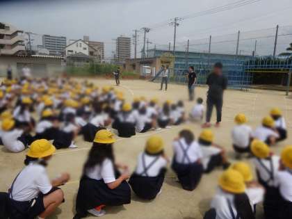 今回はそんなときのための訓練でしたが、子どもたちは、今いる場所から緊急放送を聞き、その指示通りに運動場に避難しました。