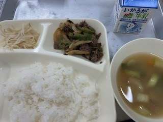 今日の献立は ・プルコギ ・トック ・もやしのナムル ・ごはん ・牛乳 です。