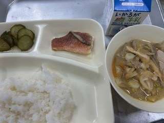 10/28 今日の給食 公開日 2025/10/28 更新日 2025/10/28 お知らせ 今日の献立は ・あかうおのしょうゆだれかけ ・豚汁 ・きゅうりのゆず風味 ・ごはん ・牛乳 です。 いいね(0)