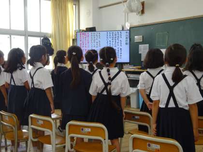 1年生の教室から響き渡るような明るく元気な歌声が聞こえてきました。