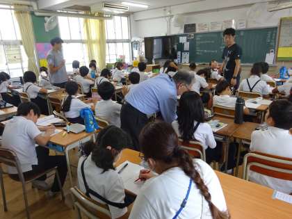 10/8 5年算数科 公開日 2025/10/08 更新日 2025/10/08 お知らせ 5年生は、算数の学習で、「2/3と3/4では、どちらが大きいですか」という問題を通して、分母がちがう分数の大きさの比べ方を考えました。 学級担任を含め4名の指導者・支援者による手厚く温かい指導・支援の下、自力解決しながら、分母をそろえればよいことに気づきました。 いいね(0)
