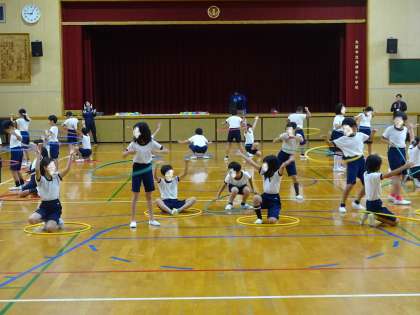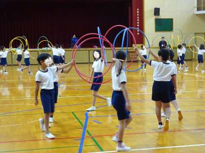 10/22 4年運動会団体演技練習 公開日 2025/10/22 更新日 2025/10/22 お知らせ 4年生の運動会での団体演技は、「Hey! WAになっておどろう!」です。「WAになっておどろう」の曲に合わせて、フラフープを巧みに使いながら楽しく踊っています。 いいね(0)