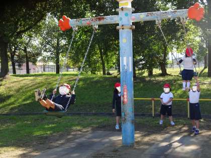 10/30 1年遠足(大泉緑地)(2) 公開日 2025/10/31 更新日 2025/10/31 お知らせ たくさんの遊具がありました。複合遊具で鬼ごっこをしたり、すべり台やブランコで遊んだりしました。とても楽しかったです。 いいね(0)