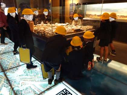 明治・大正・昭和の大阪のまち・住まいと暮らしの展示を見学しました。建物はもちろんのこと暮らしぶりや風俗まで細かく再現した「住まいの大阪六景」の模型は見事でした。