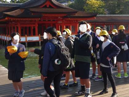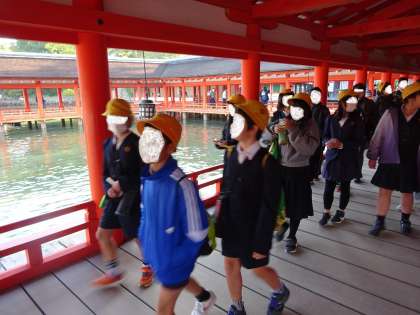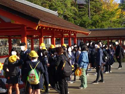 回廊を通って、厳島神社を見学しました。