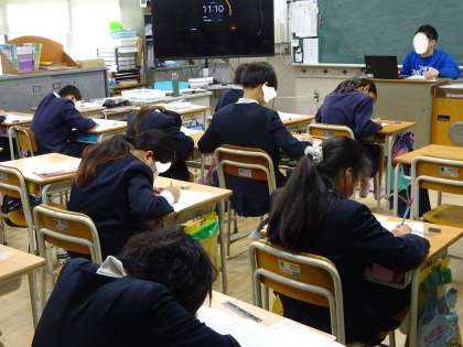12月3日(水)、小学校学力経年調査の2日目です。今日の教科は、3・4年が算数と理科、5・6年が算数と理科に加えて英語もあります。各個人への結果の返却は、3月に入ってからになります。学力の伸びが楽しみです。