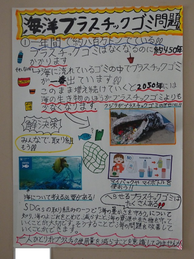 12/19 6年国語科 公開日 2025/12/19 更新日 2025/12/19 お知らせ 6年生は、2学期に入って、国語科で「プラスチックごみの問題について考えよう」の学習をしました。 教材文「『永遠のごみ』プラスチック」と、二つの資料の内容を関係づけ、プラスチックごみの問題に対する主張をもちました。グループで資料や根拠をもとに主張をまとめ、ポスターに表現しました。6年生児童の作成したポスターは、校内の各所に掲示され、全校児童に訴えかけています。 いいね(0)