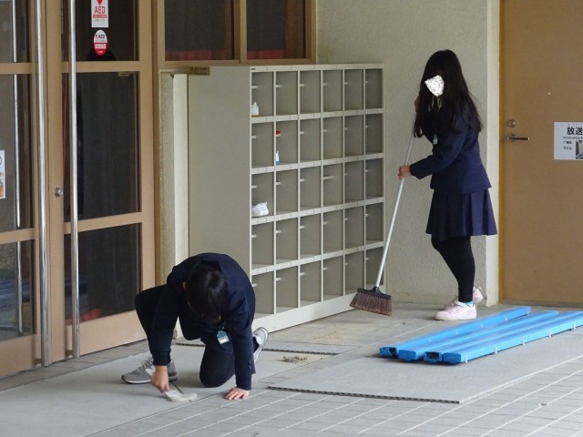12月22日(月)、給食終了後、大掃除をしました。2学期の間、お世話になった教室、廊下、階段など、みんなで力を合わせて、隅々まできれいにしました。
