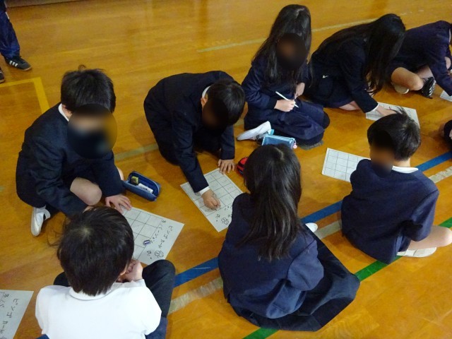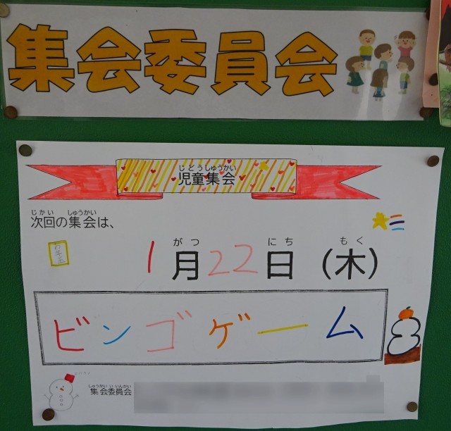 今回の児童集会は「ビンゴゲーム」です。なかよし班のペア学年(2人一組)でビンゴに挑戦しました。