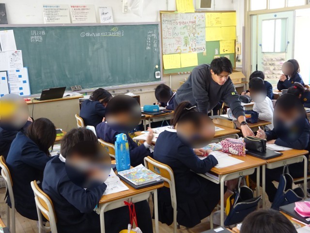 5年生の算数は「分数と小数、整数」です。前時の学習で、整数のわり算の商(答え)が分数で表すことができることを理解した子どもたちは、今回は、倍が分数でも表されること(分数倍)を学習していました。