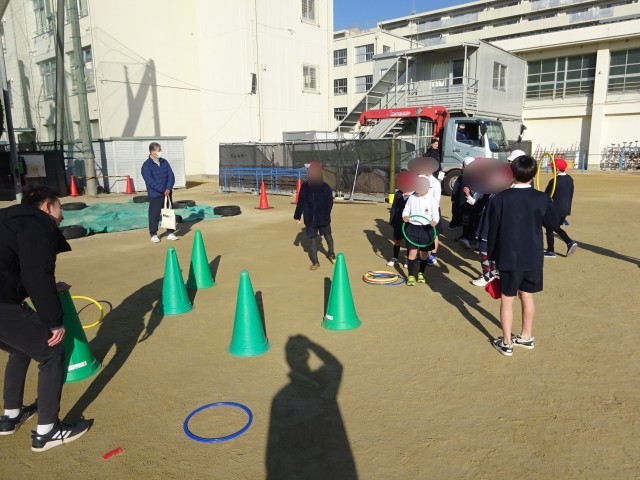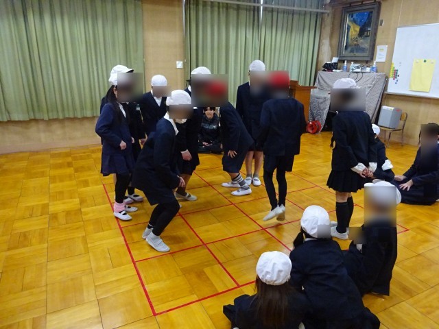 まずは、「たくさんのお店や遊びを時間内に数多く回る」という従来の形ではなく、「グループで決めた遊びをする」という形です。各班、運動場と教室でできる遊びを1つずつ選び、共に20分間ずつ遊びました。遊びは、なかよし班のリーダー(6年生)が話し合って出し合い、班のみんなに希望を聞いてから、最終調整をして決めました。