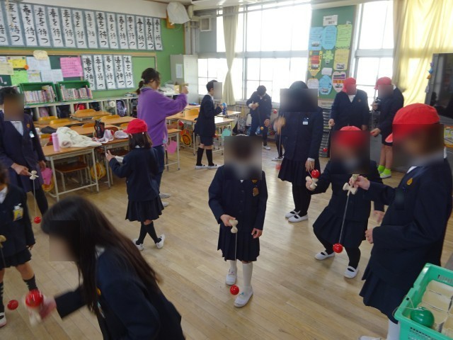 20分間で一つの遊びを行うので、普段の苅南フェスタやなかよしオリエンテーリングとは違って、じっくりと遊びに集中することができました。鬼ごっこなどは結構な運動量なので、鬼に追いかけられヘトヘトになっていた子どももいました。また、コマやけん玉などの昔遊びは多くの回数をこなすことができ、子どもたちは大変満足そうでした。