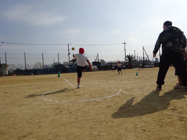 子どもたちは、気温9度の寒さにもかかわらず、元気にボールを追いかけ、ベースに向かって懸命に走っていました。