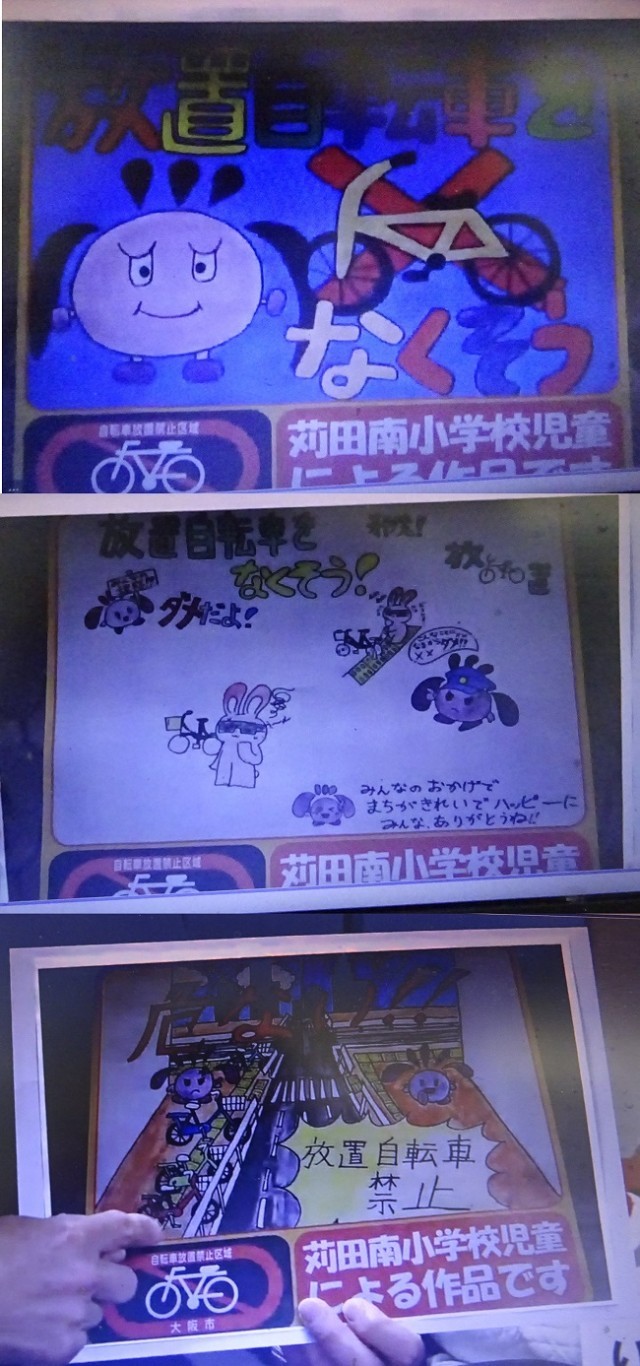 校長先生からは、まず、今年度も児童が描いた放置自転車問題をテーマにした絵画の中で、あびこ駅周辺で路面シートに選ばれた三作品とそれを描いた児童2名の紹介がありました。児童からは、それぞれの絵の特長や描いたときの思いなどを語ってもらいました。