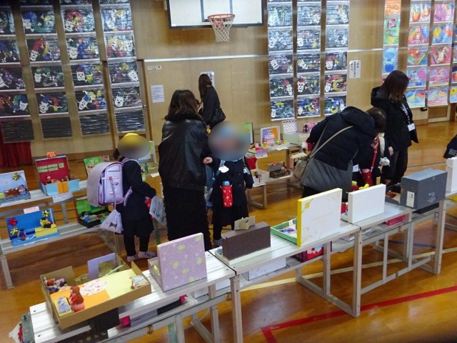 午後からの作品展は、多くの保護者の方が来場されました。特に、学習参観終了後には、親子連れの方々がたくさん訪れ、お子さんとの微笑ましいようすが数多く見られました。