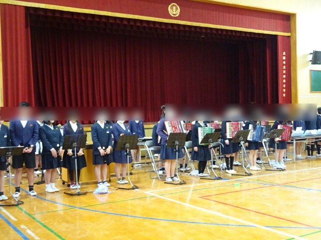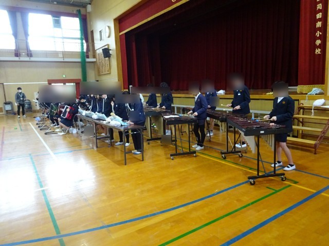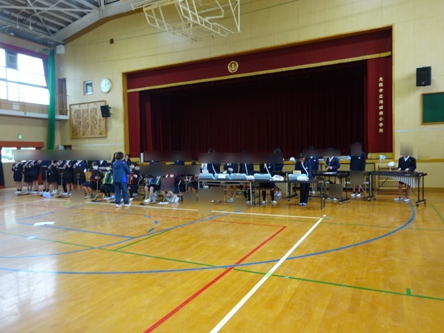 6年生は講堂で「卒業おめでとう集会」で披露する合奏の練習をしていました。6年生の保護者のみなさんは、先日の学習参観で合奏のようすをご覧になったことだと思います。