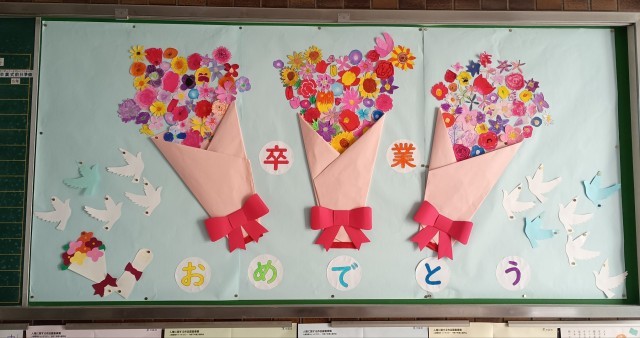 卒業おめでとう集会も終わり、ますます学校全体が卒業ムードになってきました。校内には、6年生の卒業をお祝いする掲示物があちこちに見られます。