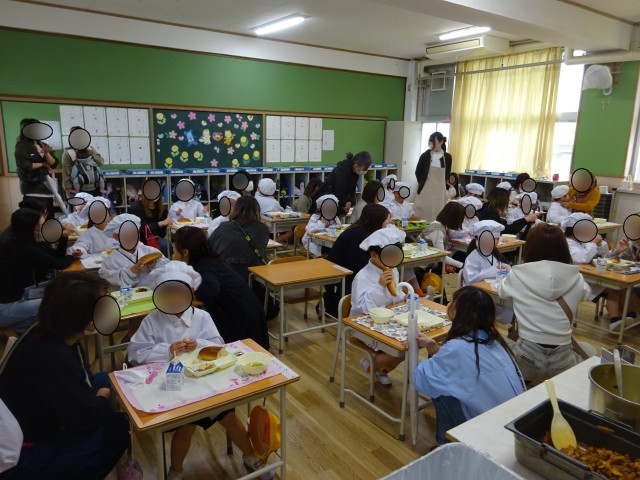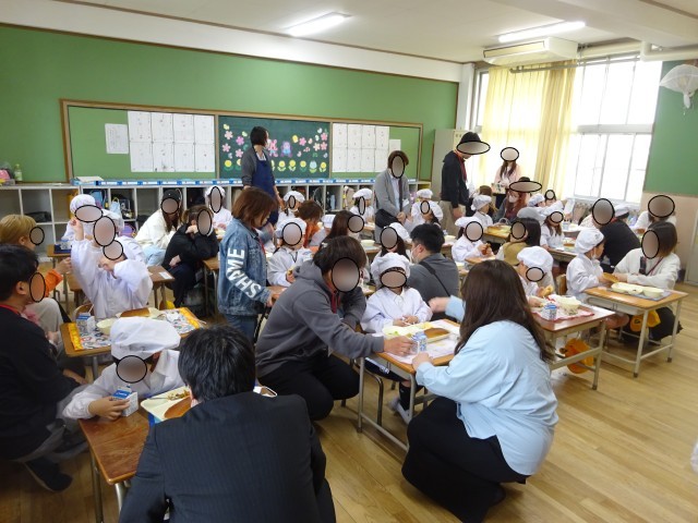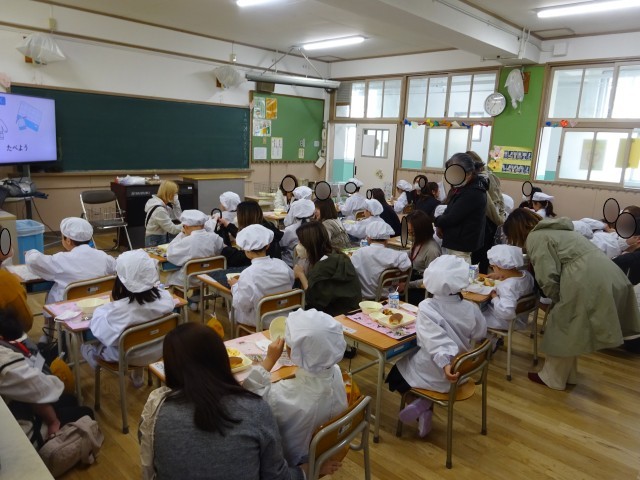 普段の給食の様子を見ていただいている時は、ちょっぴり緊張した表情の1年生でしたが、おうちの方がそばに来てくださると、とろけるような笑顔でとても嬉しそうに食べていました。保護者の皆様、お忙しい中を子ども達のために駆けつけていただきありがとうございました!