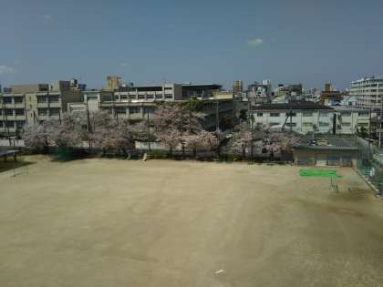 今日は運動場の状態が悪く、児童は運動場に出られませんでしたが、明日は桜の下まで行けるようになるでしょう。