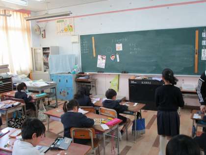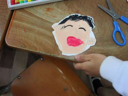 このクラスは名札(プレート)と似顔絵を描いていました。