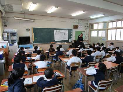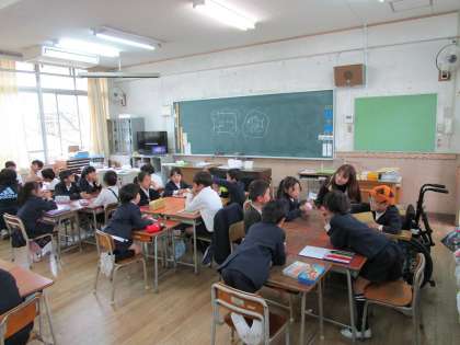 1組は学級活動で各班(グループ)のめあてを相談していました。