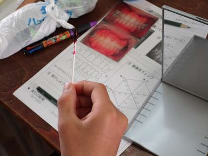 自分の歯を染め出し法を使って調べました。