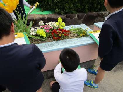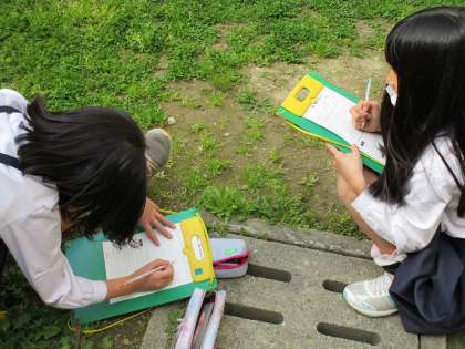 今日は観察記録の書き方を学習しました。そのあと、校庭の花の観察記録をとっていました。