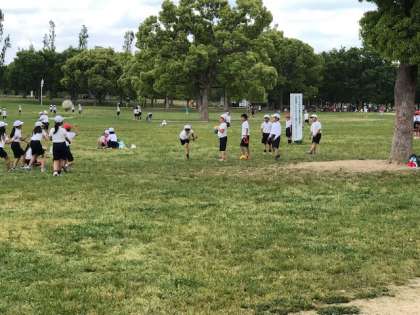 咲くやこの花館を出た後、芝生広場に向かい、お弁当を食べたり、外で遊んだりしました。サッカーボールやフリスビー、大繩などを学校から持参していたので、みんなで仲良く遊んでいました。