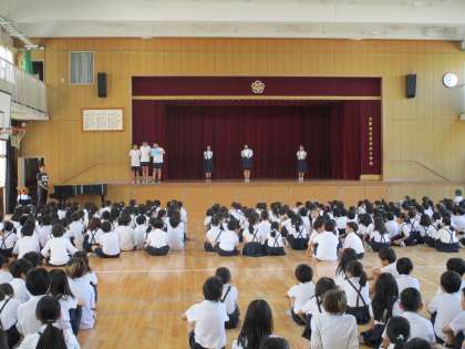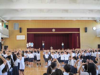 5月24日の児童集会では集会委員会がイントロ曲名あてクイズをしていました。