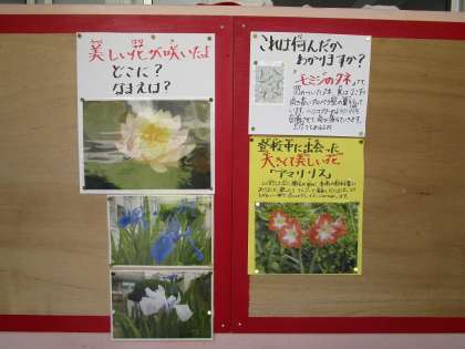 理科室の掲示板に花に関する掲示を西浦先生が作っていただいています。