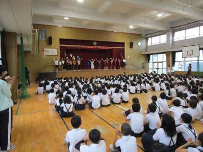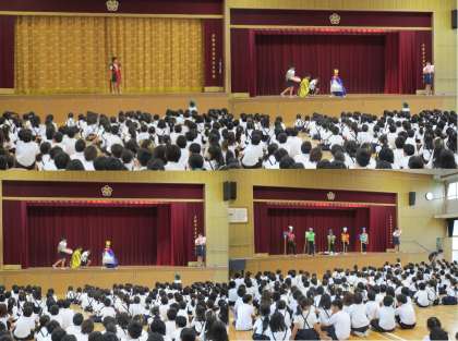 健康委員会が歯磨きの大切さを劇を通じてみんなに知らせました。