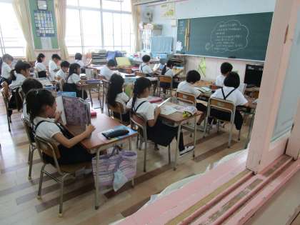 児童は静かに読書をしていました。